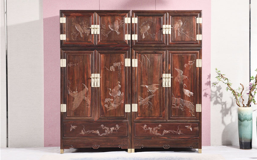 檀雕花鸟顶箱柜
